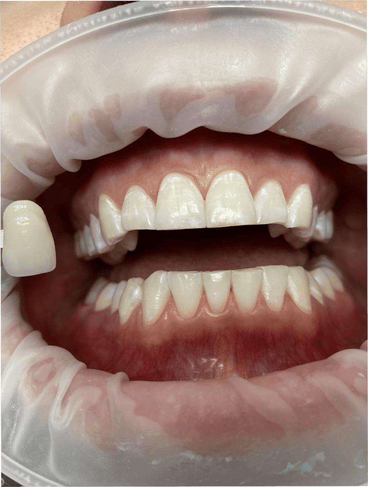 На первом этапе мы провели диагностику и профессиональную гигиену полости рта: удалили налет и зубной камень, исключили кариес и воспаления. Убедившись в состоянии здоровья полости рта, мы выбрали метод фотоотбеливания PHILIPS ZOOM 4 как безопасное и эффективное решение.